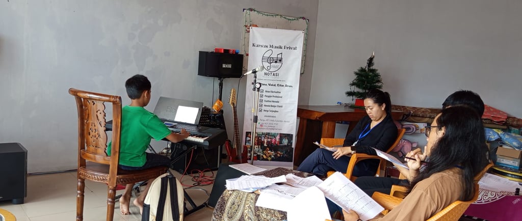 Notasi Music Course (NMC) Kendal kembali menyelenggarakan program rutin yang sangat dinantikan oleh para siswa, yaitu Evaluasi Kompetensi (Ujian) Piano yang dilaksanakan pada Senin, 29 Desember 2025. Kegiatan ini berlangsung dengan lancar, tertib, dan sukses, serta diwarnai oleh antusiasme tinggi dari seluruh peserta ujian. Sejak pagi hari, suasana di lingkungan NMC Kendal sudah terasa berbeda. Para siswa datang dengan wajah ceria, penuh semangat, dan membawa persiapan terbaik mereka untuk menampilkan kemampuan bermain piano yang telah dipelajari selama periode pembelajaran.