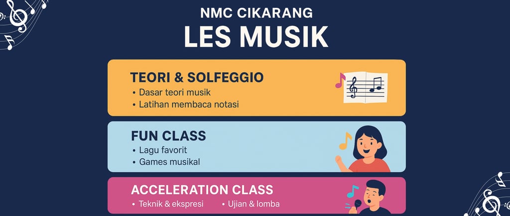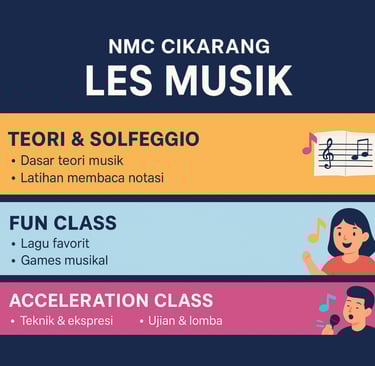 🎵 Les Musik di NMC Cikarang: Pilih Program Sesuai Kebutuhanmu — Teori & Solfegio, Fun Class, dan Acceleration Class