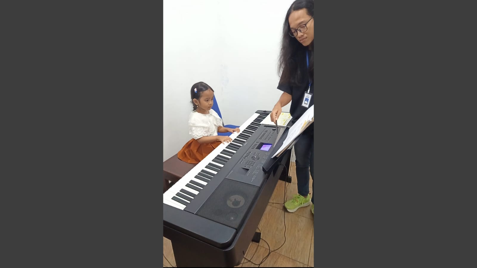 Di balik semangat seorang anak, selalu ada dukungan besar dari orang tua. Hal ini juga terlihat jelas pada murid kecil yang datang dari Batang ini. Orang tuanya dengan setia mengantarkan dan mendampingi setiap kali ia mengikuti kelas piano.