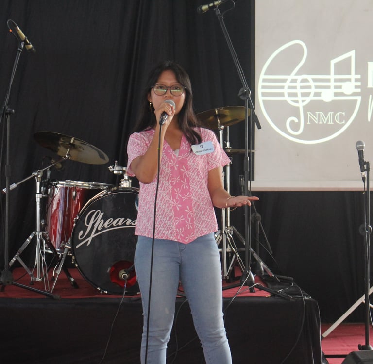NMC membiasakan siswa melakukan run-through seperti kondisi konser: memakai mikrofon, memerhatikan jarak dengan stand, dan melatih gesture yang natural. Livina belajar bagaimana menatap audiens, kapan tersenyum, serta kapan menundukkan kepala untuk memberi ruang pada momen reflektif.
