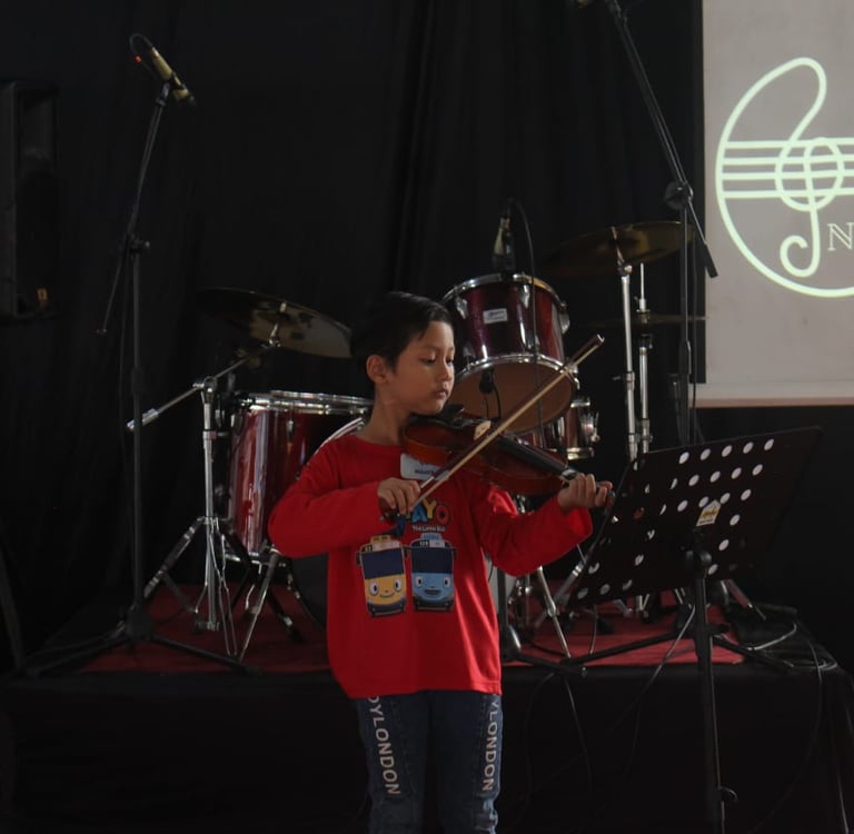 Konser Apresiasi #9 Notasi Music Course (NMC) yang digelar di Sukorejo, Kendal, tahun 2025 ini kembali menjadi panggung istimewa bagi para siswa-siswi berbakat dari berbagai instrumen. Salah satu penampilan yang paling mencuri perhatian adalah persembahan dari Maher, siswa biola yang tahun ini mendapatkan penghargaan prestisius “Most Dedicated Violin Student 2025”. Maher tampil memukau dengan lagu penuh keceriaan berjudul “Hei Tayo”, sebuah lagu tema dari serial animasi anak yang sudah tak asing lagi bagi banyak orang.