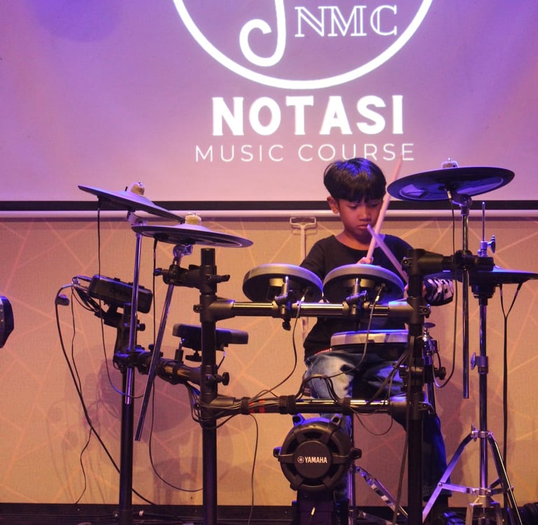 Di Notasi Music Course, kami membimbing setiap siswa dengan pendekatan personal. Kami percaya setiap drummer memiliki gaya unik, dan groove adalah ekspresi dari keunikan tersebut.